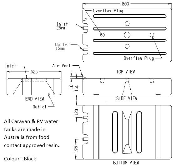 The 63L water tank is suitable for caravans and RV’s. Australian made from food contact approve resin.